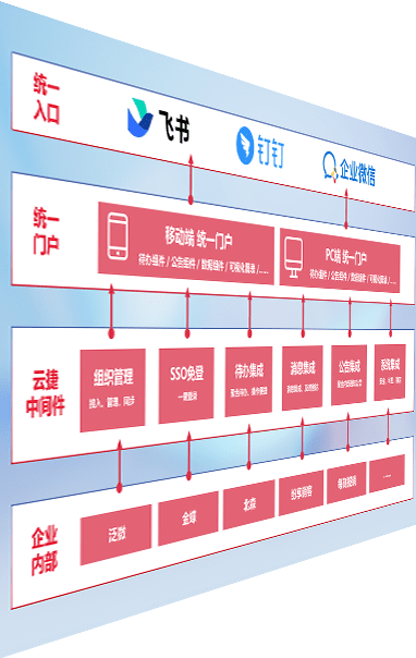 对协作平台提供支持服务,,支持企业应用与协作平台对接,,,,包含组织同步、、、消息集成、、、、待办集成等。。。支持目前主流的协作平台:钉钉、、企微和飞书。。。